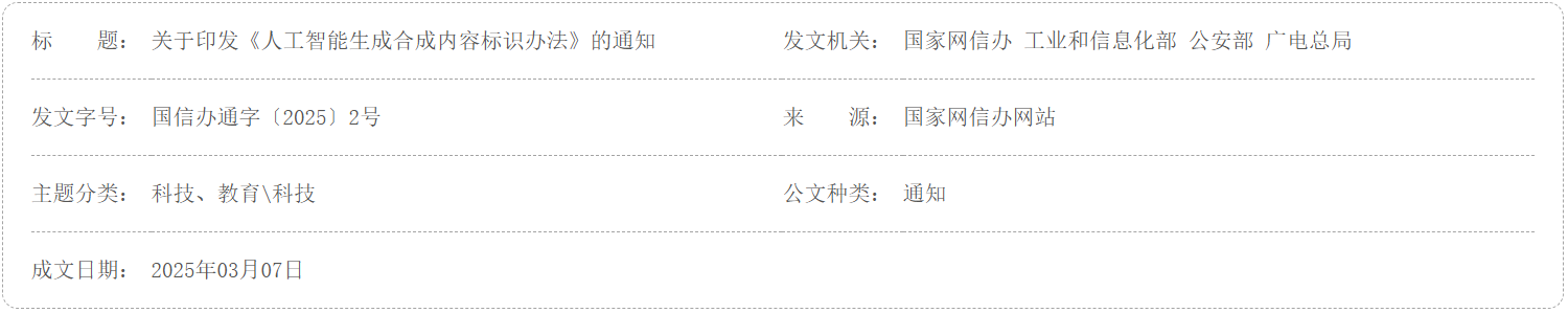 关于印发《人工智能生成合成内容标识办法》的通知